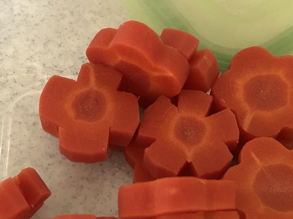 金時人参を、クッキー型より直径が大きい部分は型抜きして、小さい部分は包丁でお花の形に🌸