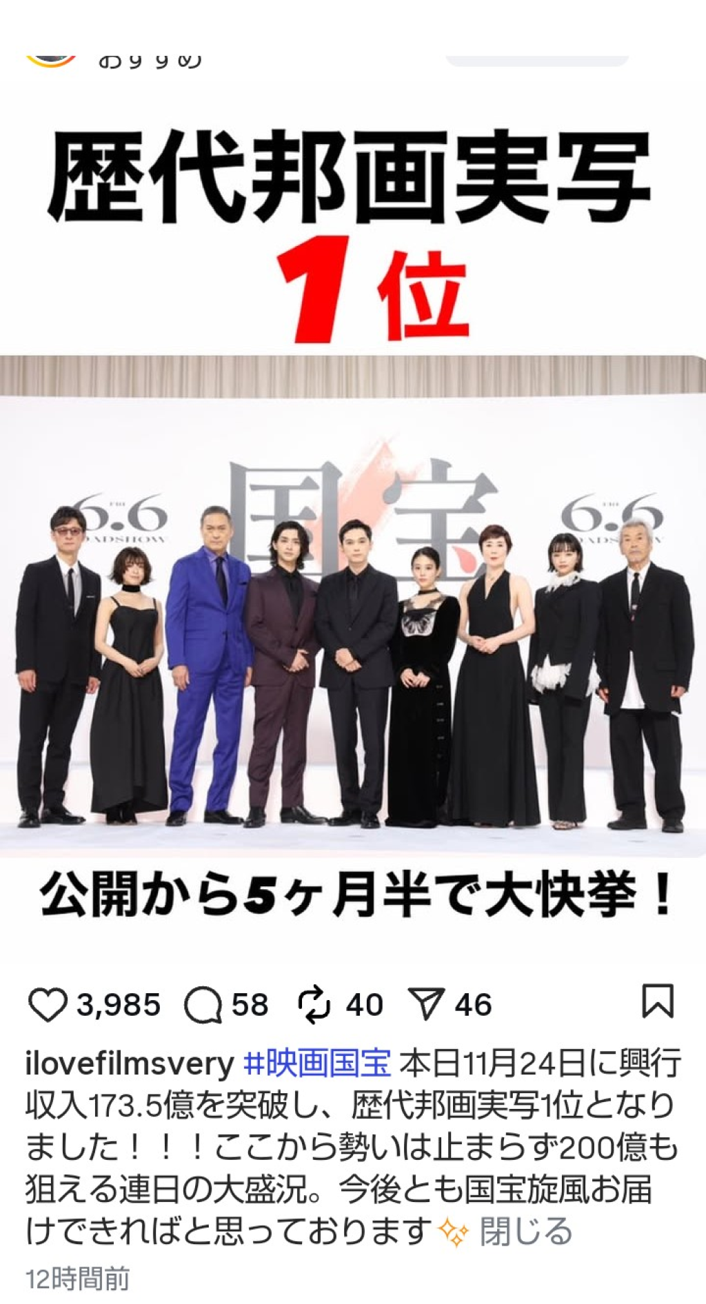 私も国宝まだ観てないのでそろそろ行きたいのですが
