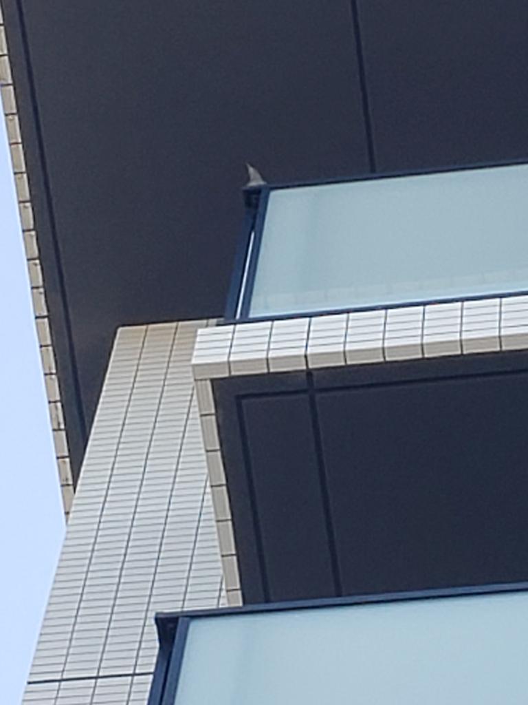 8/30(土)🐦夕方🍫後、店舗近くの建物の4階位かな?ベランダ手摺りに止まって鳴いていました。