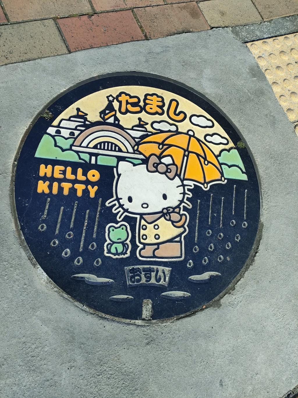 キティのマンホールとか色々作ってますね。サンリオにロイヤリティ払うの高くないかなとすこし心配しますか、そこはキティの街だからノーロイヤリティかな。街が平和な感じで良いですね✨