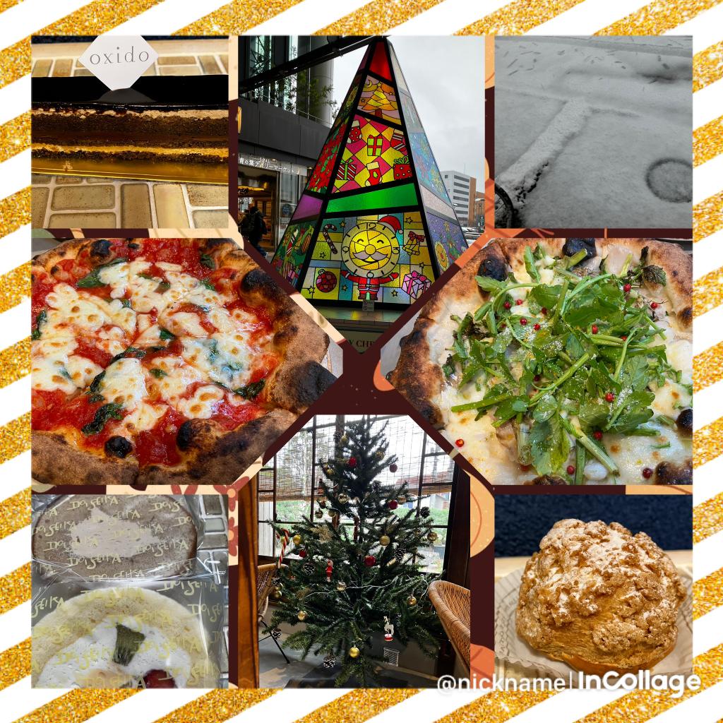 写真は、昨日今日で食べた(食べる予定のものも)ピザやスイーツ、ツリー🌲など