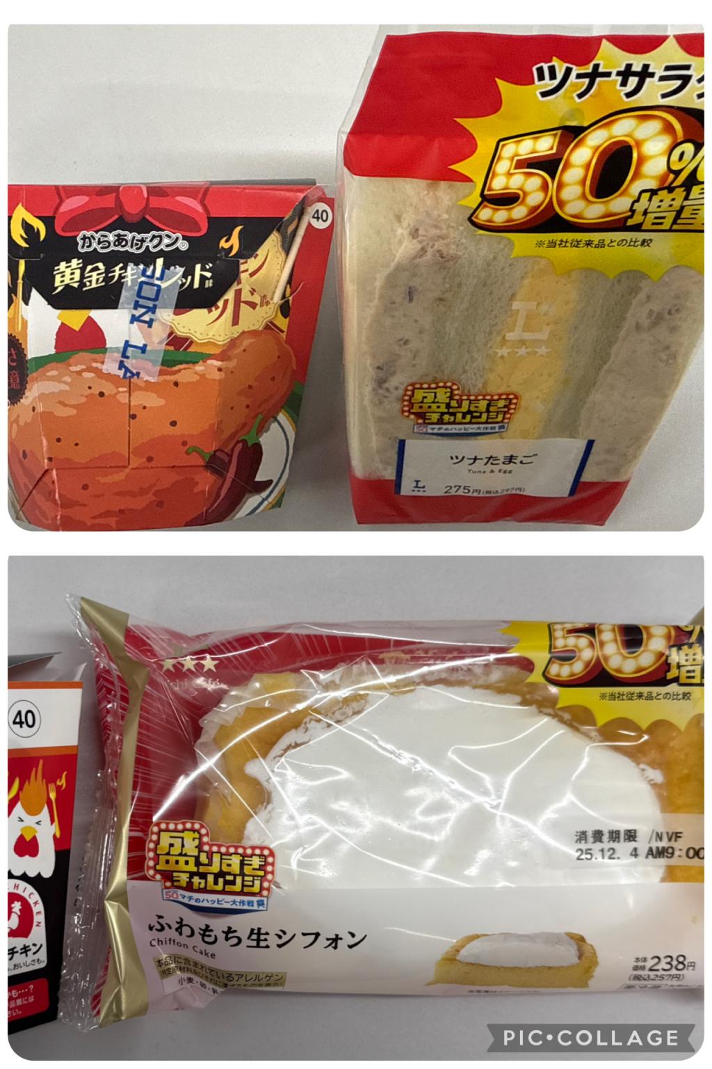 ポンタパスのサンドとスイーツの50円引きクーポン、マシマシのサンドとシフォンにも使えました👌この2つにからあげくん食べて+0.2キロなら上出来😂サンドとシフォンはどっちもサンド目でした😋